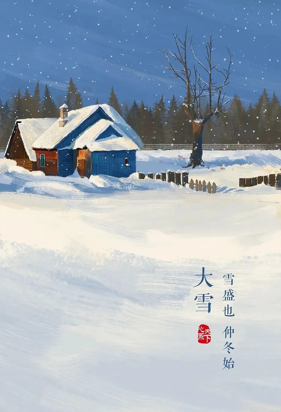 大雪,顾名思义,雪量大。古人云:“大者,盛也,至此而雪盛也”。大雪标志着仲冬时节正式开始。我国古代将大雪分为三候:“一候鹃鸥不鸣;二候虎始交;三候荔挺出。”这是说此时因天气寒冷,寒号鸟也不再鸣叫了;由于此时是阴气最盛时期,正所谓盛极而衰,阳气已有所萌动,所以老虎开始有求偶行为;“荔挺”为兰草一种,也感到阳气萌动而抽出新芽。大雪时节,万物潜藏,养生保健应当顺应“冬月闭藏”的特点。