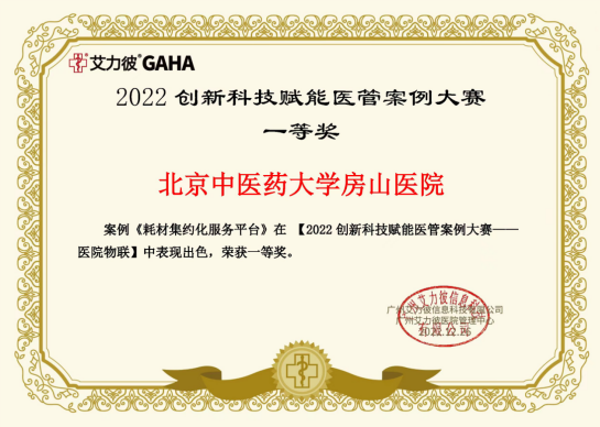 “2022艾力彼秋季榜暨创新科技赋能医管案例大赛结果发布会”于2022年12月26日顺利召开。500家参赛医院提交案例1500个,经过激烈角逐,共评选出一等奖24名、二等奖51名、三等奖87名。北京中医院大学房山医院耗材办参赛作品——耗材集约化服务平台喜获医院物联赛道一等奖。