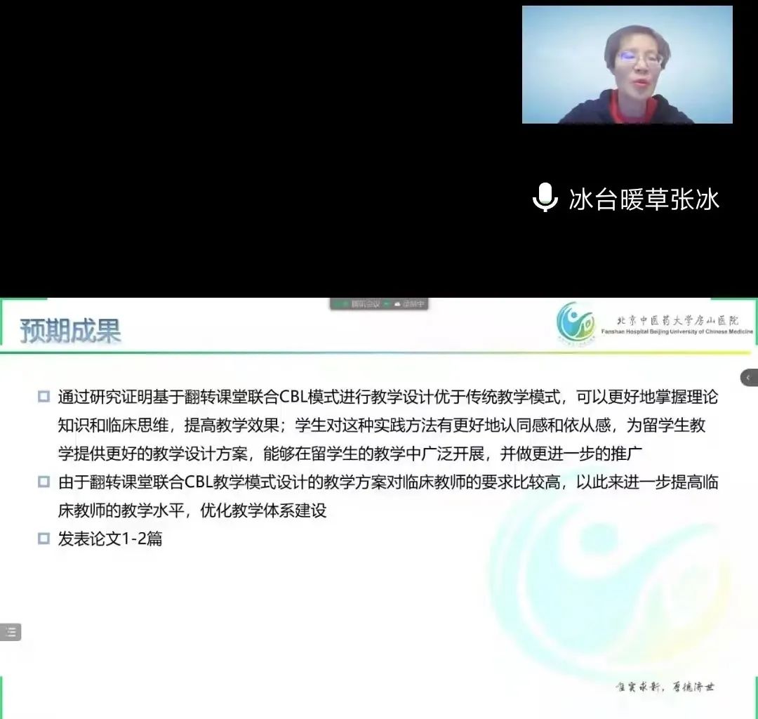 肾病科张南南老师对我院将要进行的《中医内科学》水肿病章节的翻转课堂课题进行汇报,并请张冰教授进行指导点评。