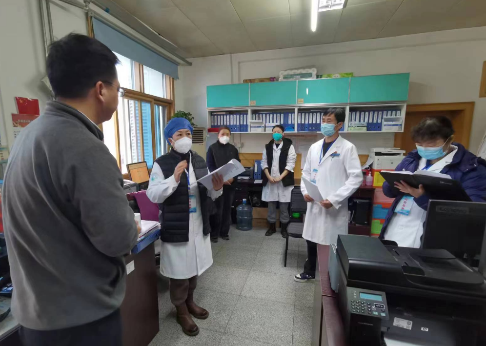 对医务科的疫情防控工作、行业作风等方面进行了督导, 围绕“保健康、防重症、降死亡”,推动平稳有序实施“乙类乙管”,做好资源整合,切实提升急救转运能力、扩容救治能力,畅通门急诊和住院诊治流程,全力以赴开展重症救治。