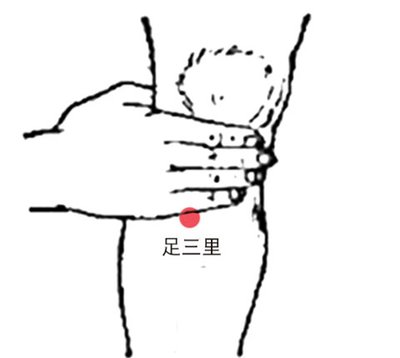 按摩法:以拇指置于穴位上,稍用力按揉,感觉酸胀为度;或手指微屈,握成空拳,以掌心侧敲打足三里。每次5-10分钟,每日可按摩多次。