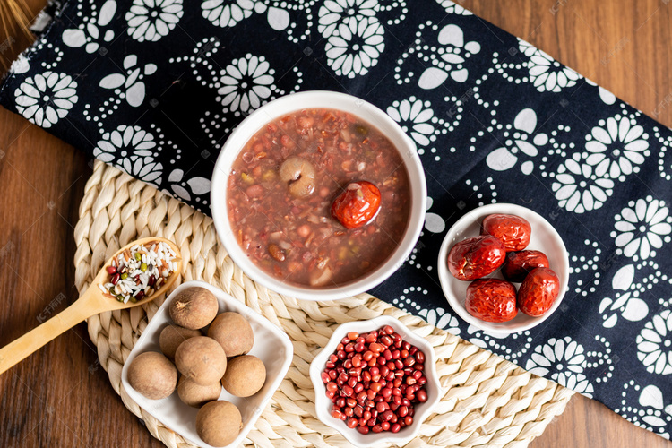 桂圆性温味甘,益心脾,补气血,具有良好的滋养补益作用,因此腊八粥首选桂圆为原料。此外,像红枣、花生、红豆、红糖、白果、枸杞子都是补血、温阳的好食品,可以将它们与桂圆互相搭配,连同粳米一起煮腊八粥喝。
