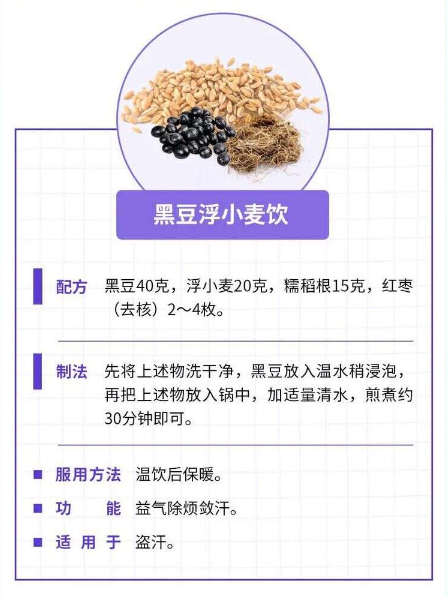 “阳康”后有些人出现汗出较多、醒后一身汗或者动辄汗出,虽然不疼不痒却也着实烦人,中医认为是由于人体阴阳失调、腠理不固、营卫不和而致汗液外泄失常的病证,多与病后体虚有关。可采用黑豆浮小麦饮调理,必要时中医科就诊。