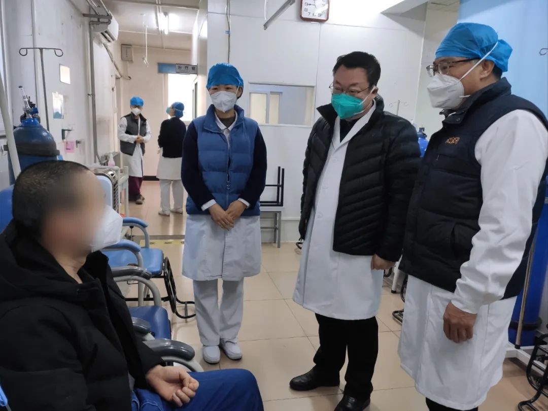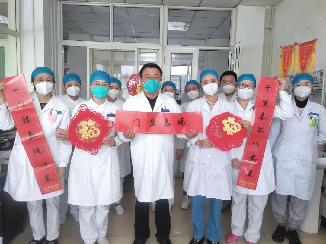 院领导班子为表率,无论白天黑夜带班坚守岗位,并为值班的一线医务工作者、后勤保障人员送来新年的问候。为患者送上节日的祝福,祝他们早日康复,新年快乐!