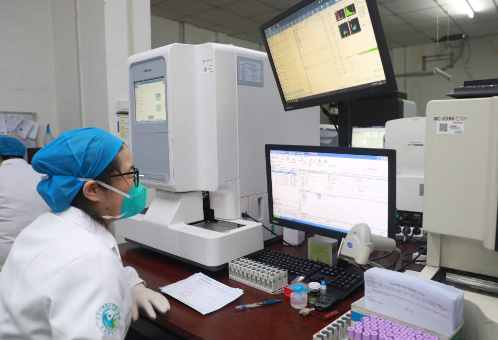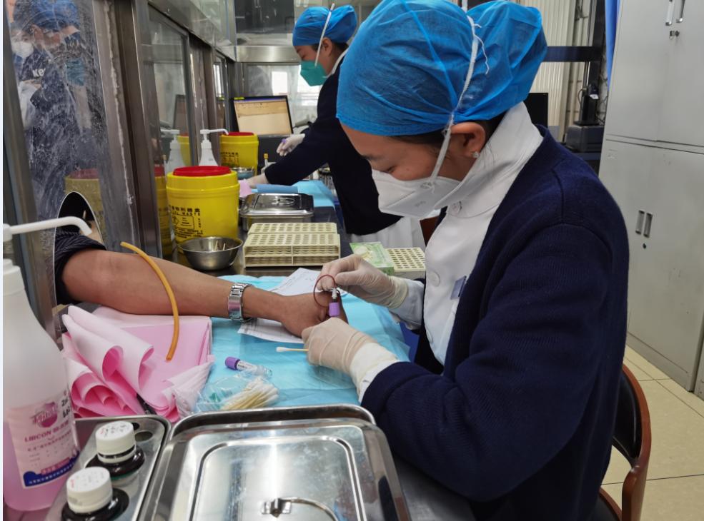 医学检验中心、医技影像中心、心电图室、抽血室等科室的医务人员为了能够将一张张化验单、报告单及时交到患者的手中,他们终日忙碌,虽是严冬,但他们的手套里却装满了汗水。