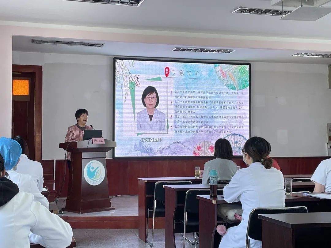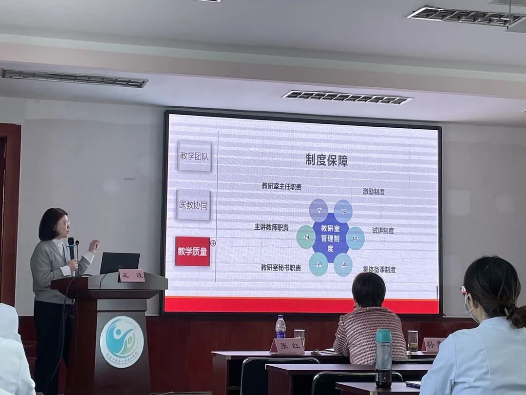 王玫教授对东直门医院西内教研室做了简要介绍后,着重从教学管理、青年教师培养、课程思政引导三个方面结合自身的管理体会进行培训: