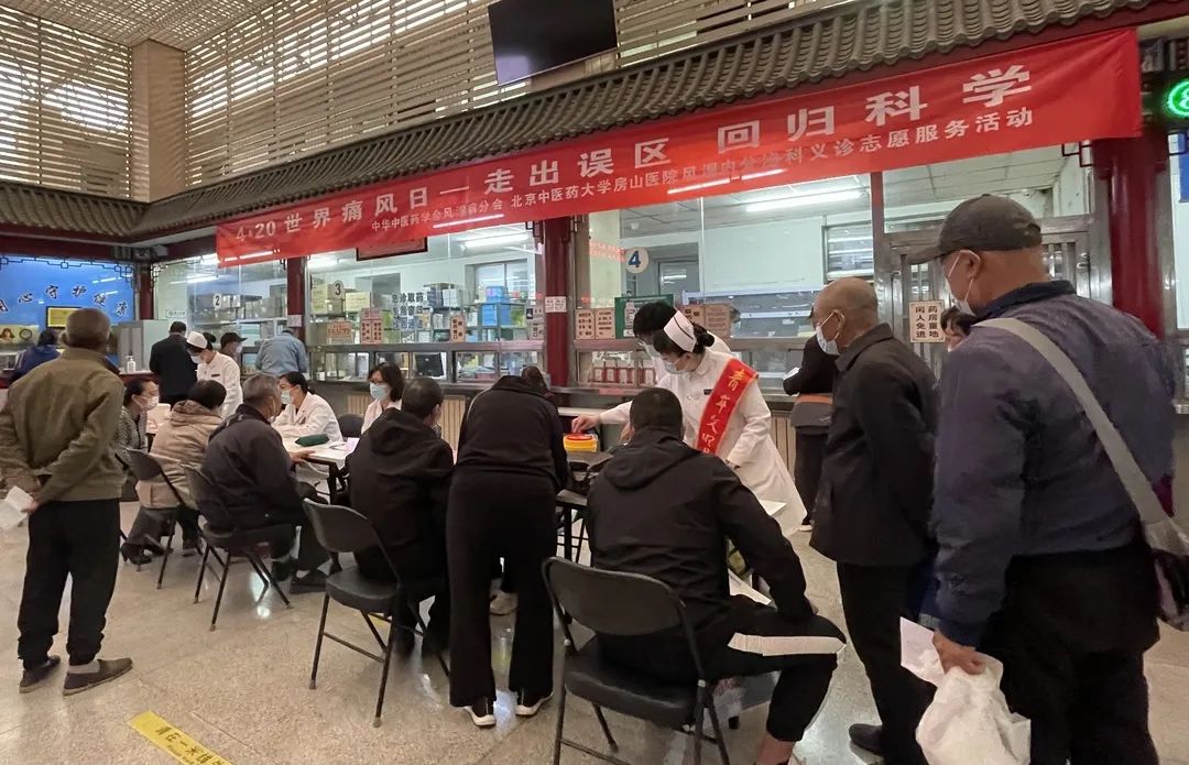 4月20日,北京中医药大学房山医院风湿内分泌科医护人员免费为患者现场诊治、重点分析、治疗指导,进行痛风疾病知识科普、免费检测尿酸和痛风科普资料的发放。