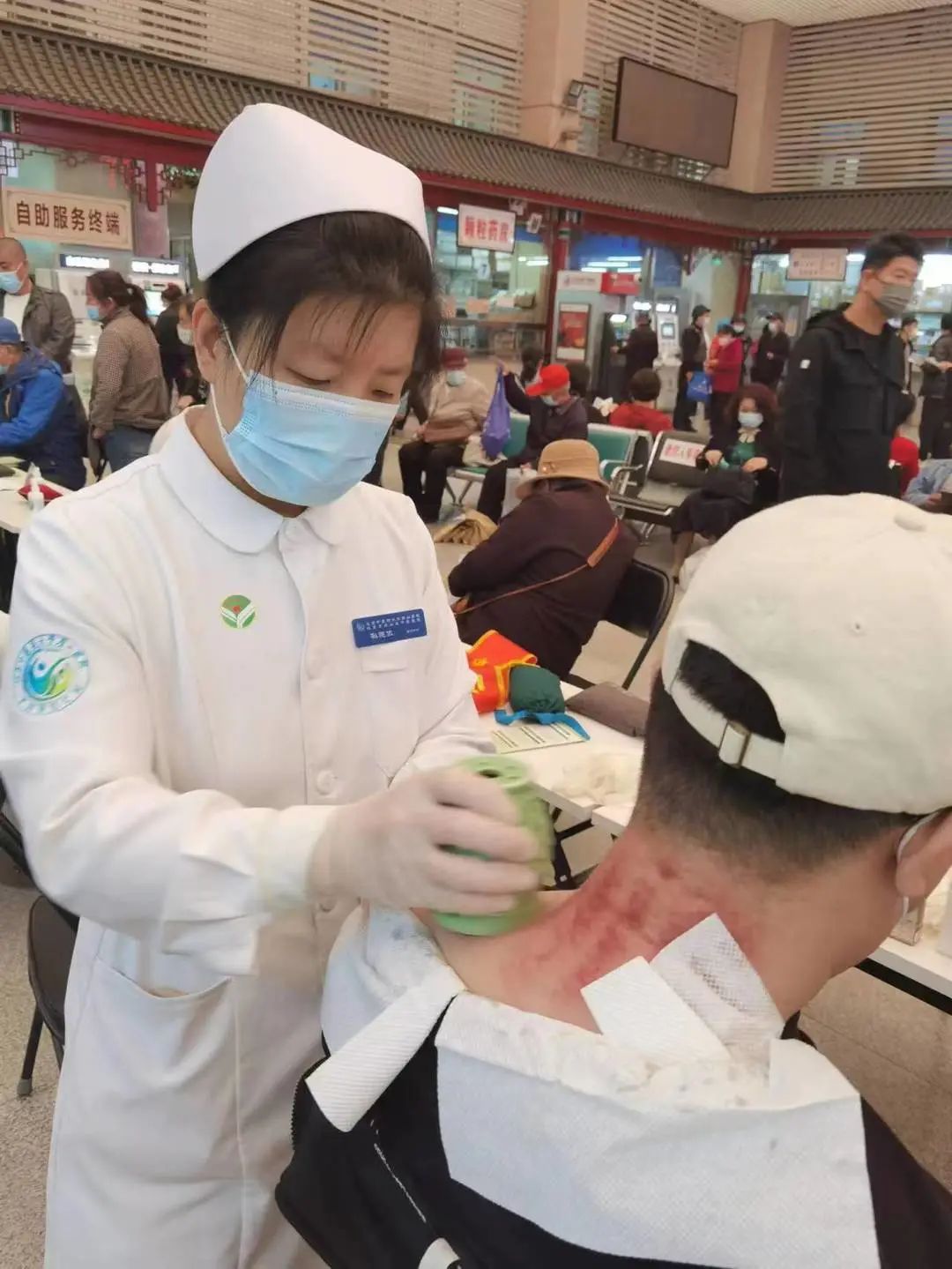 现场的群众免费体验特色疗法温灸刮痧疗法,此疗法针对各种关节疼痛,可以温经通络,促进气血循环,调节脏腑功能,提高身体抵抗力等作用,得到群众的一致好评。