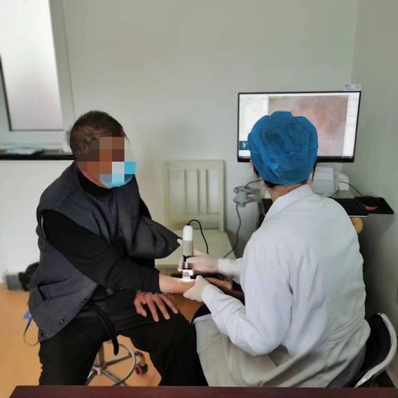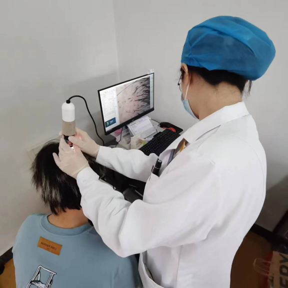 北京中医药大学房山医院皮肤科设立毛发专病门诊,并引进先进检测设备——皮肤毛发观察仪。该设备兼具皮肤镜与毛发镜的功能,搭载了医学影像管理与传输系统软件,有图像显示、采集、处理、编辑以及科研分析等多种功能,可提供皮肤表皮及真皮浅层形态、毛囊单位在皮面开口处、皮表微细结构、毛干形态、毛细血管和发根形态的信息。皮肤镜检查的应用可减少皮肤病理有创检查的使用,可对临床诊断和防治策略提出有益的指导意见。