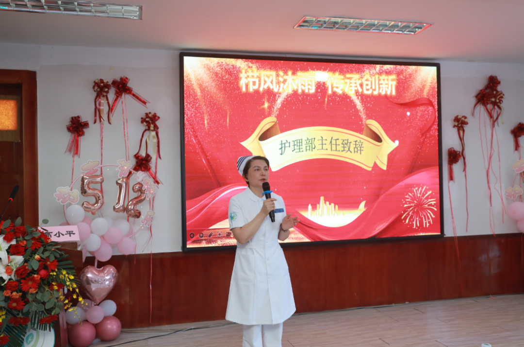 护理部高小平主任致开幕词,首先向各位领导、各位同仁的到来表示热烈的欢迎!向从事护理工作的兄弟姐妹们表示最崇高的敬意!向护士的家人们表示节日的问候!感谢他们对护理工作的理解和永远的支持!一代又一代的护理人高举着房山医院护理的这面旗帜,初心如磐,奋楫笃行。