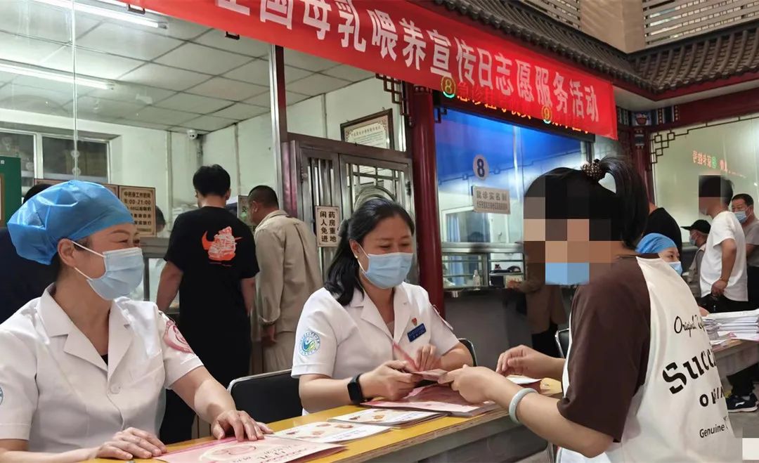 在此次母乳喂养日的活动中,活动前佩戴着母乳喂养袖标的医护就已经开始忙碌起来,挂条幅、发放母乳喂养宣传手册、由产科专业医护在门诊大厅开展义诊,对于前来就诊和咨询的准妈妈面对面的指导,宣传母乳喂养的重要性,并为其解答疑惑,同时帮助准妈妈们建立母乳喂养的自信心,紧紧围绕今年的主题“母乳,婴儿的第一剂疫苗”为母婴家庭建立宝宝出生后的第一道屏障。