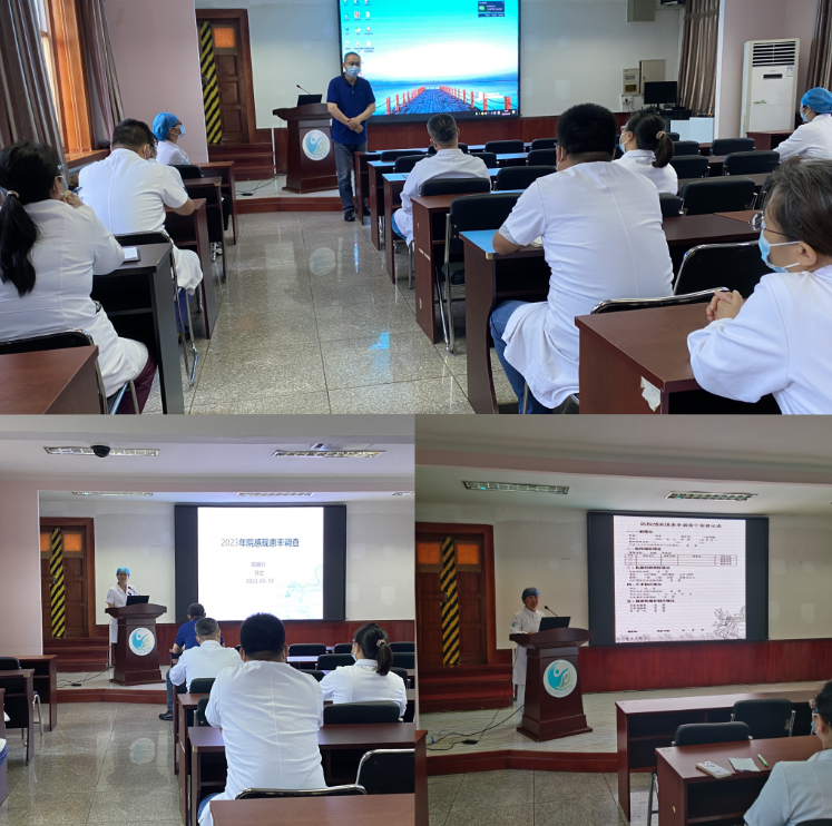 为了确保此次医院感染现患率调查工作顺利开展,院感办于2023年5月19日组织召开调查前的培训会。会上,副院长傅春江强调医院感染现患率调查的重要性,要求大家按照此次培训的内容认真开展调查任务;院感办主任代阿秋就现患率调查的目的和重要意义做了阐述,并对本次现患率调查实施方案进行了工作部署;院感专职人员对医院感染的定义、诊断标准、调查注意事项、填报说明、蓝蜻蜓系统填报流程等进行详细解读。