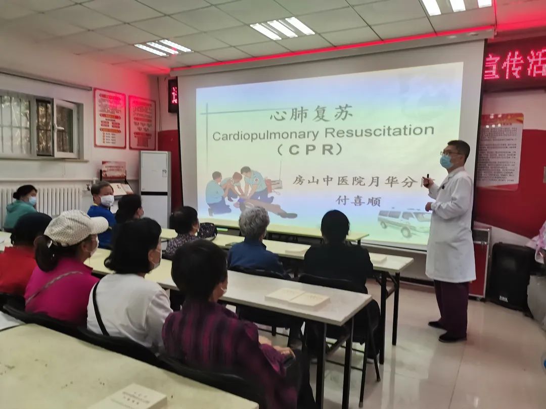 5月19日,顶着濛濛细雨,付喜顺主治医师、徐美娜主管护师又来到了送变电社区,为居民朋友们讲解——心肺复苏。