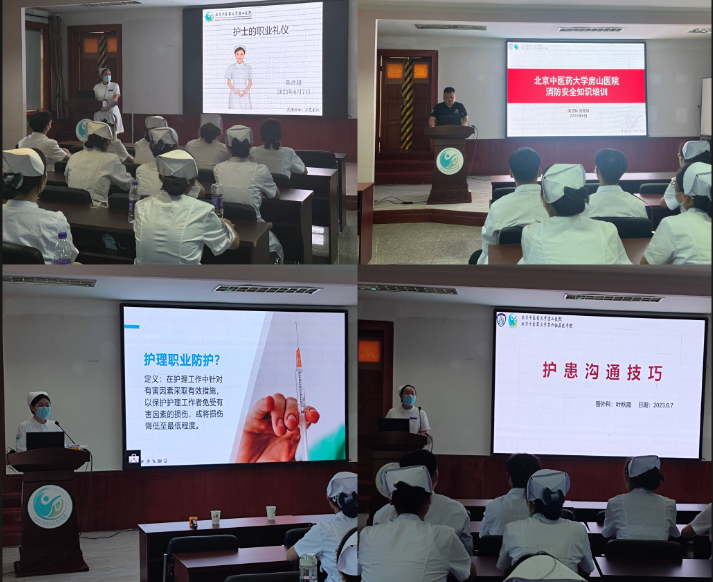 欢迎会结束后由脑病科护士长陈彦超、教学助理赵会卿、叶秋霞、保卫科副科长刘海旭对护生们从护士职业礼仪、职业防护、护患沟通技巧、安全警示教育等方面进行了岗前培训,实习生们纷纷表示收获满满,将按带教老师要求顺利完成实习任务,在实习结束时交出一份满意的答卷。