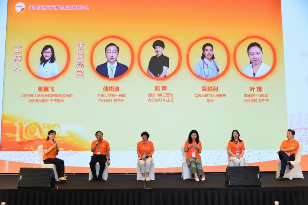 橙色访谈环节,兰州大学第一医院内分泌科科主任傅松波教授、西安市第三医院内分泌科科刘萍教授、克拉玛依市人民医院吴胜利院长、恩施州中心医院内分泌科叶茂主任分享了他们在MMC运营过程中取得的成绩和经验。