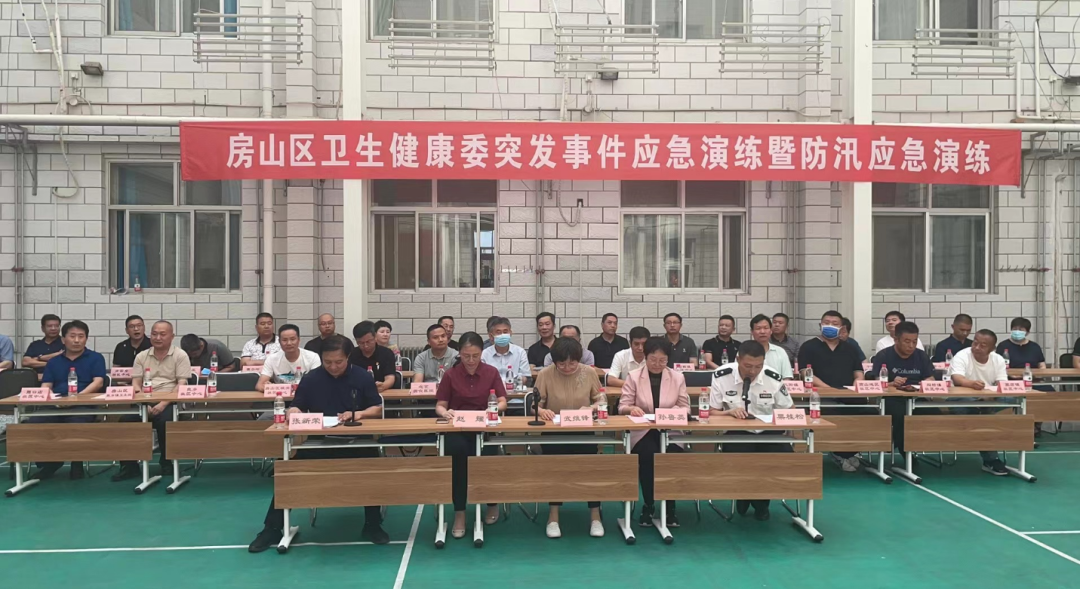 2023年6月21日下午4点,房山区卫生健康委2023年突发事件应急演练暨防汛应急演练在北京中医药大学房山医院开展。出席本次防汛演练的有房山区卫生健康委副主任武维峰、房山区疾病预防控制中心主任赵耀、北京中医药大学房山医院院长孙鲁英及班子成员、房山区卫生系统二级以上医院的主管领导及24个社区卫生服务中心主要负责人及相关工作人员。参演单位有房山区卫生健康委员会、北京中医药大学房山医院、房山区疾病预防控制中心。